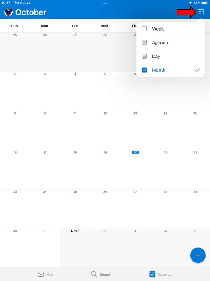 This image is what your calendar will look like. If you tap the icon highlighted below, you can change the view that you see from week, day, or month.