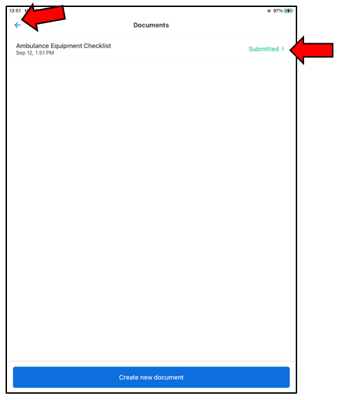Confirm that your document was submitted. Tap the back arrow to return to the home screen.