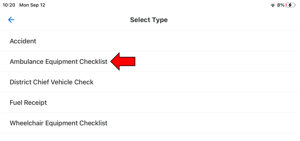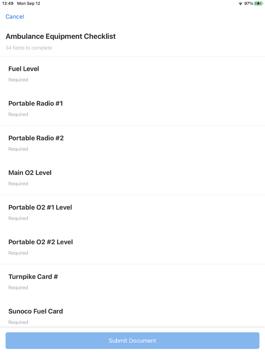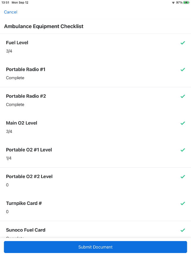 Fill out the checklist by tapping on each item and making the correct selection or entering the value.