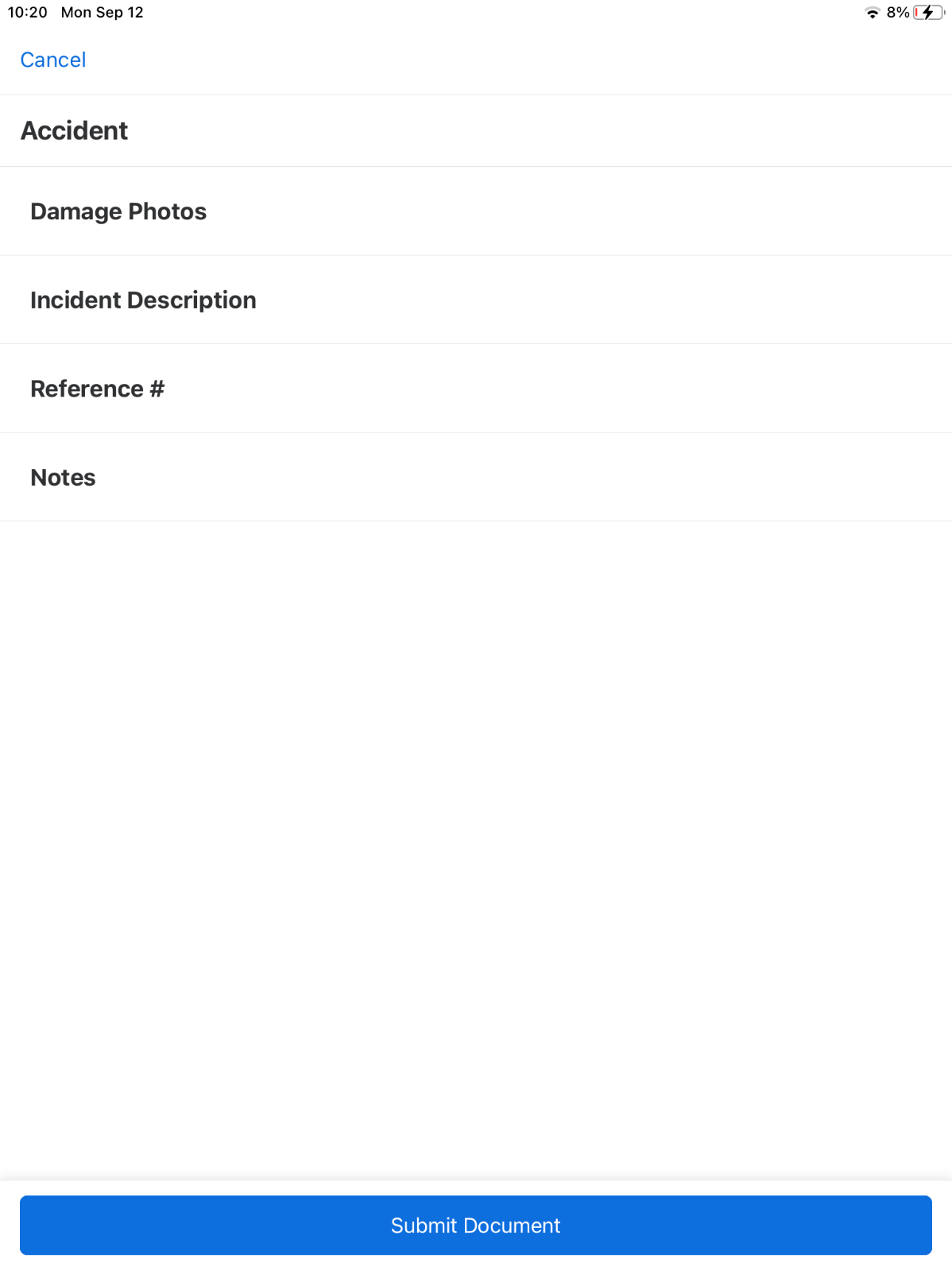 Tap Accident in the list of choices.